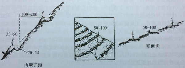 水平溝整地法沿等高線環(huán)山挖溝,把挖出的土堆在溝的下方,形成土埂,在埂上或埂的內(nèi)壁造林。